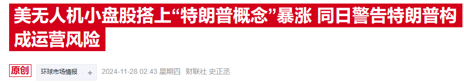 此前,市场曾猜测小唐纳德可能会在特朗普新政府中担任要职,但他本人已明确表态,将以合伙人的身份加入专注于“并行经济、去全球化以及反ESG”三大领域投资的1789 Capital。上周,小唐纳德还以该机构合伙人的身份加入了无人机制造商Unusual Machines的顾问委员会,导致Unusual Machines股价当周累涨逾325%,尽管本周有所回落。