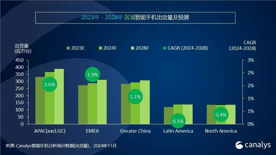 科技市场独立分析机构Canalys最新发布的智能手机市场报告显示,智能手机市场的增长动力将在2025年后趋于平缓,预计2024年至2028年的年复合增长率将下调至1%。