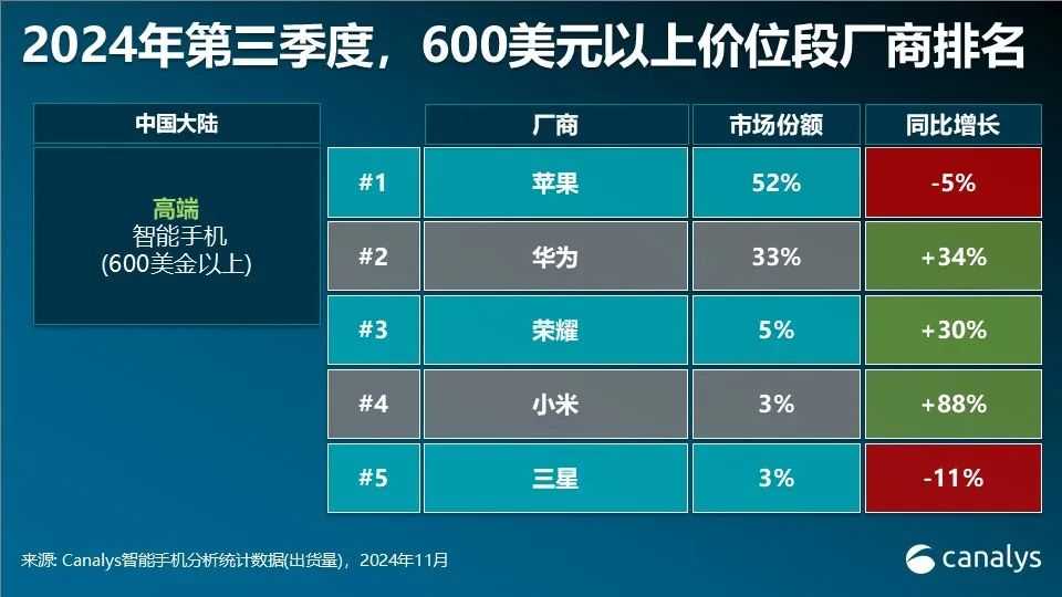 2024年第三季度,全球600美元及以上价位段的手机出货量同比增长15%,AI手机新品成为消费者关注的焦点。