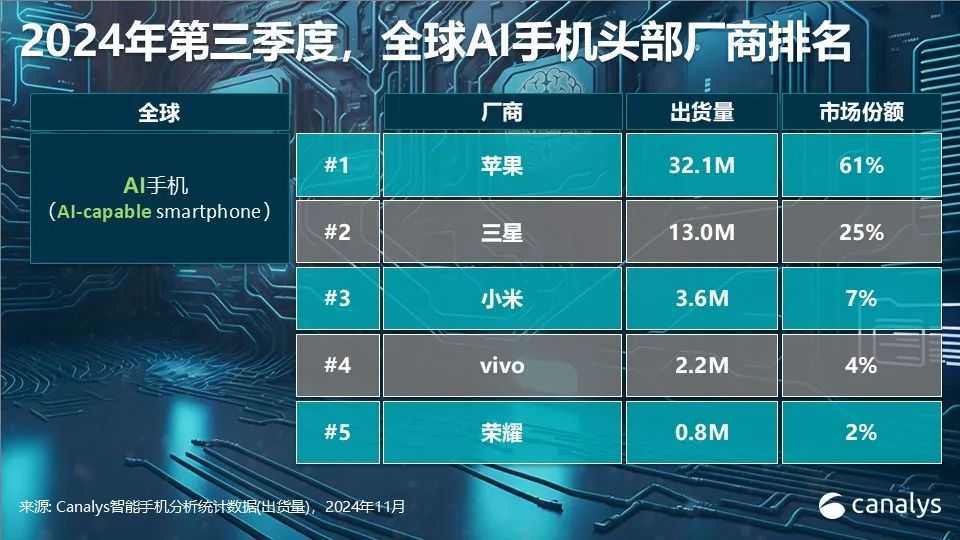 Canalys报告:智能手机市场增长放缓,AI手机渗透率加速