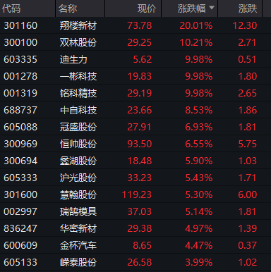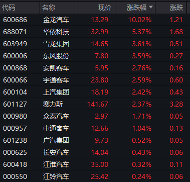 汽车产业链也集体走高,汽车整车股震荡拉升,金龙汽车率先涨停,雪龙集团、东风股份、安凯客车等个股跟涨。汽车零部件板块表现同样活跃,翔楼新材20CM涨停,迪生力、一彬科技、铭科精技等多只个股涨停。中国汽车流通协会表示,受报废更新及以旧换新政策影响,预计12月汽车市场将呈现翘尾行情。