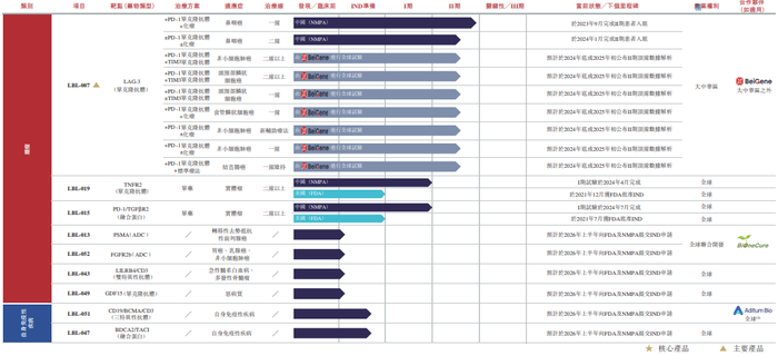 主要产品LBL-033是一款靶向MUC16及CD3的双特异性T细胞衔接抗体,用于治疗卵巢癌等妇科癌症。LBL-007则是一款靶向LAG3的单克隆抗体,已进入全球临床进度前三,且已被证实对鼻咽癌有效。