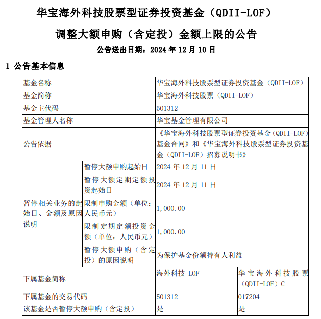 红星资本局12月10日消息,跨境投资热潮在2024年持续升温,然而随着海外市场波动加剧以及申购资金的大量涌入,QDII基金规模迅速扩张,部分基金因此不得不采取限购措施。近期,多只QDII基金发布公告,暂停大额申购或全面暂停申购。