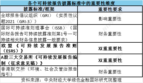 当前,国内外主流的可持续发展报告披露标准中,部分强调单一的“影响/财务”重要性,而一些则强调“双重重要性”。影响重要性由GRI提出,强调企业经营对经济、社会、环境的正负面影响;财务重要性则基于财务报告和“国际财务报告准则(IFRS)”等,实现全球共识。