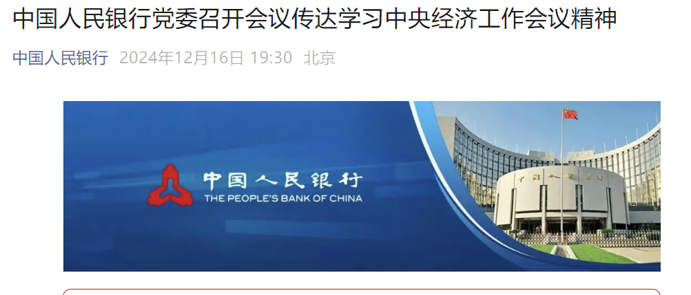 据央行官方消息,12月16日,中国人民银行党委召开会议,深入传达学习中央经济工作会议精神,并依据全国金融系统工作会议的部署,研究确定了具体的贯彻落实措施。会议由中国人民银行党委书记、行长潘功胜主持,党委全体成员均出席。