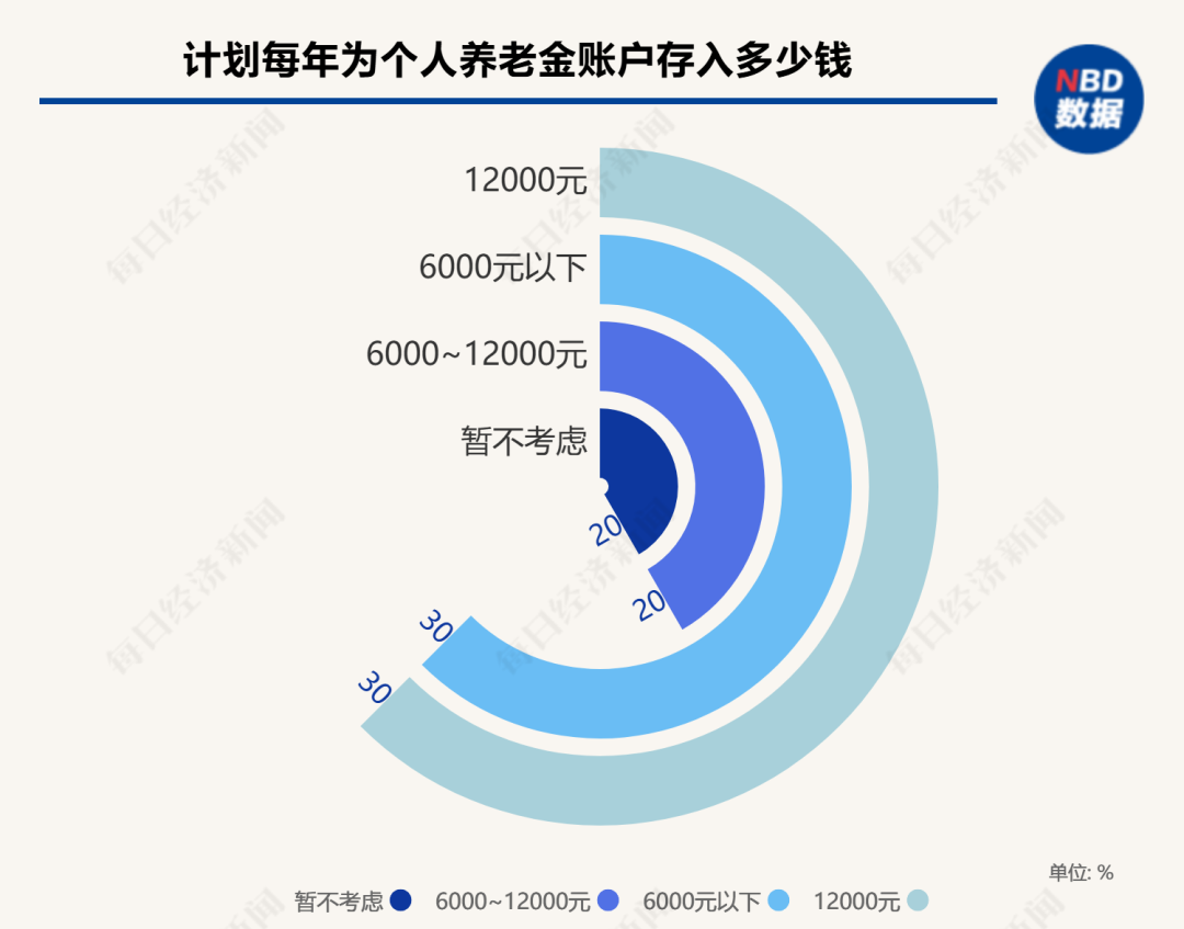 问卷调查显示,超四成的上班族表示会考虑申请个人养老金账户并购买相关产品,其中七成左右认为税收优惠力度大是主要购买原因。在计划每年缴存金额方面,三成选择了12000元,三成选择了6000元以下,呈现出两级分化的状态。在倾向购买的养老金融产品方面,养老储蓄产品最受欢迎,其次是养老理财和养老保险。