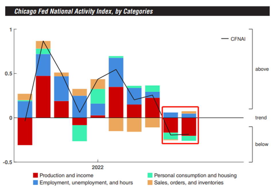 芝加哥联储全美活动指数在7月份连续第二个月录得负值(图片来源:芝加哥联储)