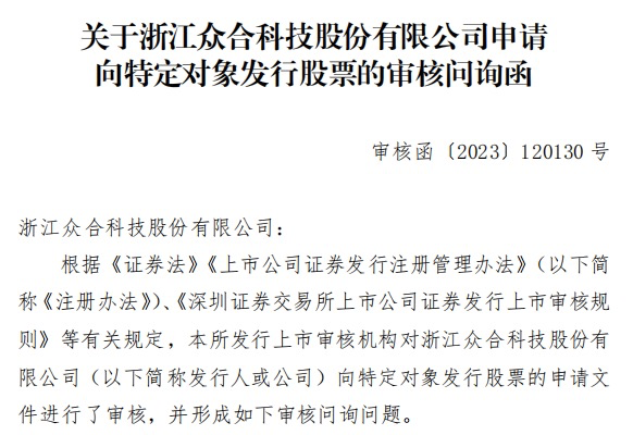 昨日晚间,众合科技发布公告,透露公司已收到深交所就定增事项发出的问询函。该函件要求众合科技就公司业绩变化、募投项目情况以及财务性投资等多个方面作出详细说明。