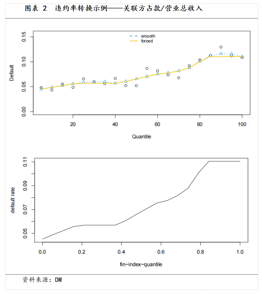 DM将原始数据转化为连续违约率,作为模型自变量,提高模型稳定性和预测能力,同时保持可解释性。