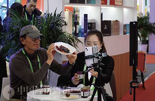 参展商在现场直播带货