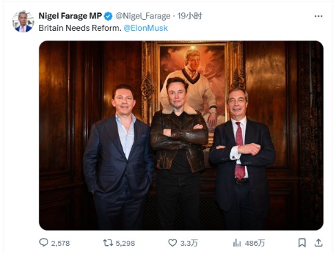 马斯克或涉足英国政治,与英国改革党领袖会面