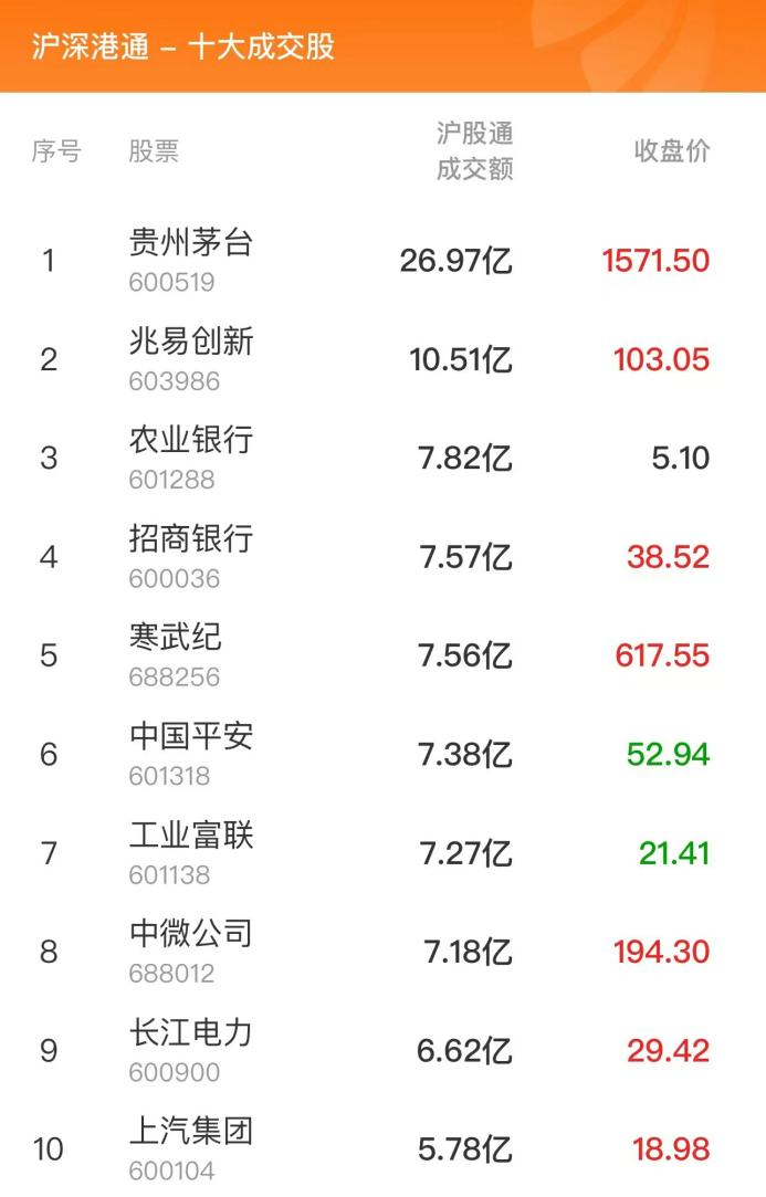 在陆股通十大成交股方面,交易所公布的最新数据显示,贵州茅台继续领跑沪股通,单日成交额高达26.97亿元;兆易创新与农业银行紧随其后,成交额分别为10.51亿元和7.82亿元。在深股通方面,中兴通讯、宁德时代及东方财富占据前三甲,成交额依次为15.92亿元、15.36亿元和11.48亿元,显示出这些蓝筹股在外资心中的重要地位。