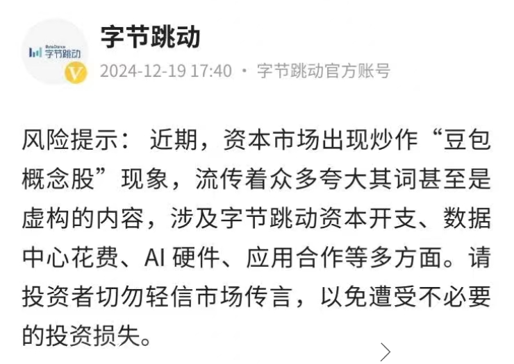 字节跳动警示“豆包概念股”炒作风险