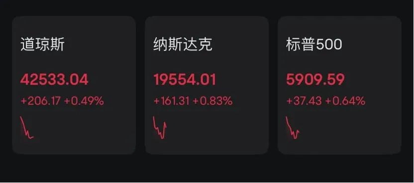 在美股市场方面,尽管美联储的鹰派表态一度引发市场担忧,但美股在12月19日晚间开盘后仍然表现出强劲的反弹势头。截至收盘,标普500指数、道指和纳指均实现上涨,涨幅分别为0.64%、0.49%和0.83%。