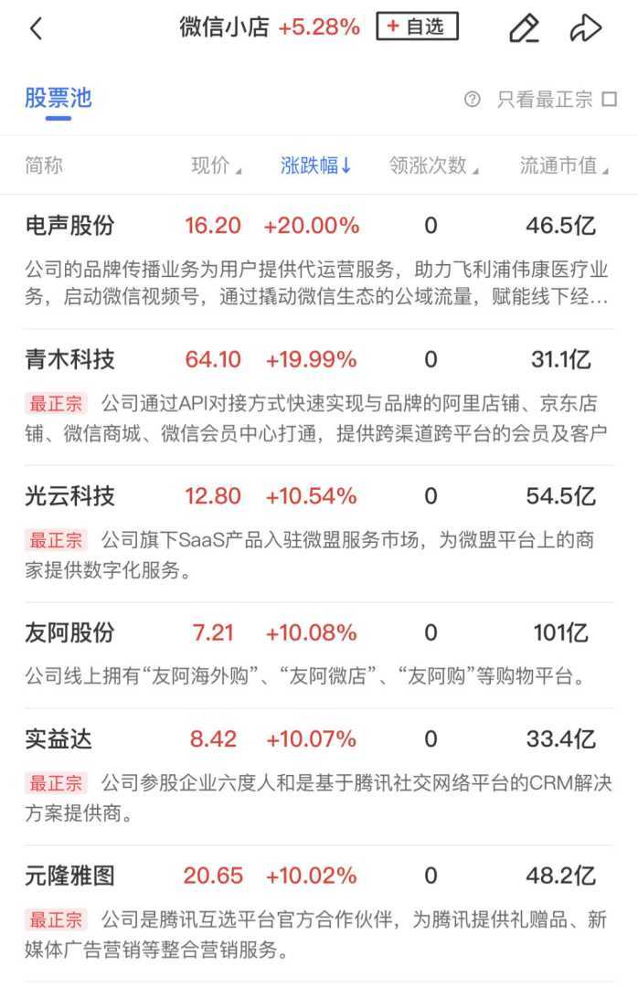 大消费股方面,微信小店概念持续发酵,友阿股份、实益达、电声股份、青木科技、元隆雅图等个股涨停,光云科技、壹网壹创、天地在线等个股同样涨幅居前。消息面上,微信小店官方宣布正式开启“送礼物”功能的灰度测试,为微信电商生态的繁荣注入新的活力。