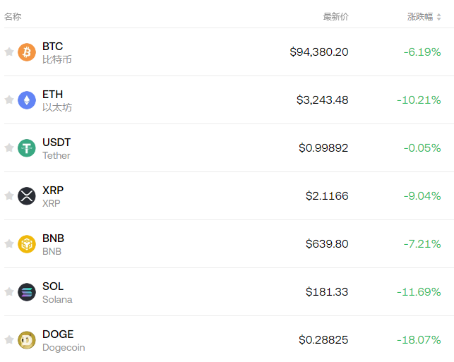 近期,全球加密货币市场遭遇重创,主要加密货币价格普遍大幅下滑。其中,比特币的跌幅进一步扩大至6%,价格已跌破94500美元大关;以太坊的跌幅更为猛烈,达到了10%,目前价格已跌至3250美元。受此影响,加密货币市场的总市值也随之下滑,现已跌破3.4万亿美元,具体数值为3.399万亿美元,24小时内的跌幅高达9.4%。