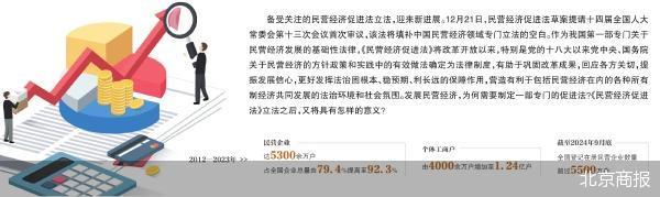 改革开放以来,我国民营经济蓬勃发展。数据显示,从2012年至2023年,民营企业占全国企业总量的比例由79.4%上升至92.3%,数量超过5300万户,个体工商户数量更是从4000余万户增加至1.24亿户。截至2024年9月底,全国登记在册的民营企业数量已超过5500万户,彰显出民营经济的强大活力和潜力。