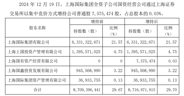 12月19日,浦发银行第一大股东上海国际集团有限公司(下称“上海国际集团”)宣布,已通过全资子公司上海国有资产经营有限公司(下称“上海国资经营公司”)以集中竞价方式增持该行757.55万股股份,占总股本的0.03%。这一行为标志着上海国际集团历史上首次从二级市场增持浦发银行股份。