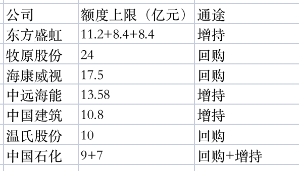 此外,牧原股份(002714.SZ)、海康威视(002415.SZ)、中远海能(600026.SH)、东方盛虹(000301.SZ)、中国石化(600028.SH)、温氏股份(300498.SZ)等公司的再贷款额度也超过10亿元。东方盛虹的控股股东及其一致行动人计划6个月内合计增持金额不低于20亿元,不超过40亿元,资金来源为自有资金和专项贷款相结合的方式。