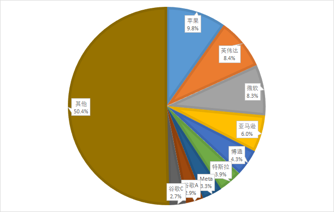 具体而言,在纳斯达克100指数中,苹果的权重从上周五的9.2%攀升至9.8%,英伟达从7.9%上涨至8.4%,微软和亚马逊同样实现了权重的增长,谷歌的升幅虽相对较小,但也体现了其在指数中地位的稳固。这一变化反映了这些公司在市场中的强劲表现。