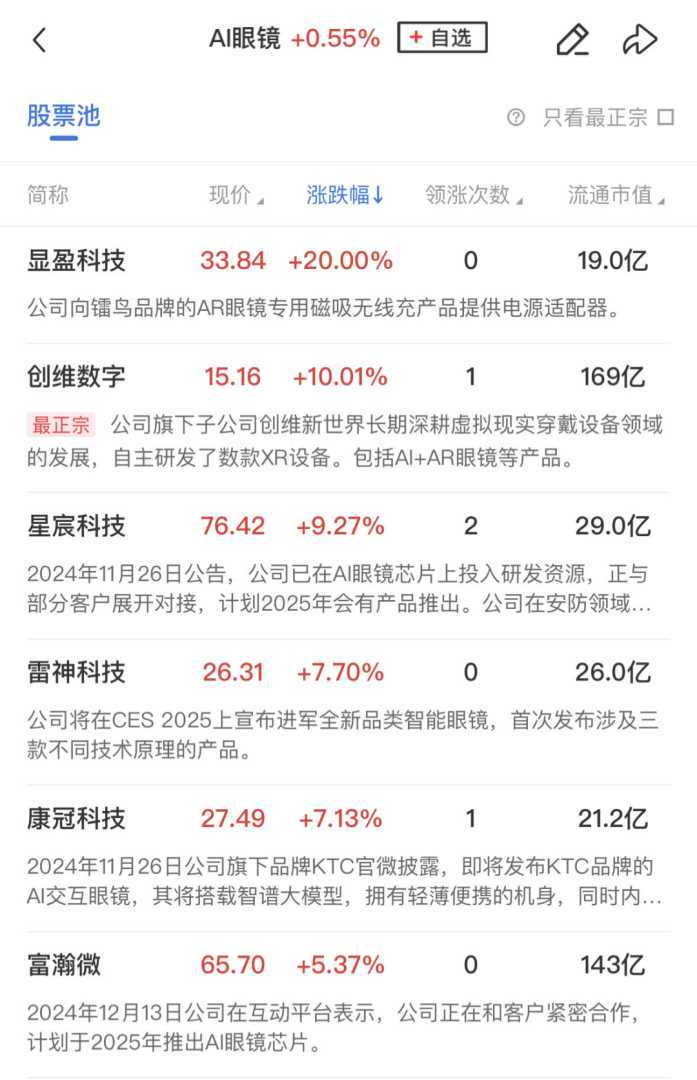 AI眼镜概念股在盘中探底回升,显盈科技、创维数字等个股涨停。近期,Meta宣布与眼镜集团EssilorLuxottica合作,计划在其太阳镜中加入显示屏,智能眼镜有望成为下一代AI最佳落地终端之一。