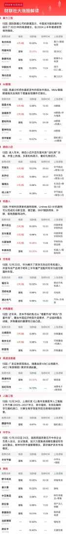 板块走势上,银行板块再度成为市场亮点,工商银行、中国银行、建设银行、农业银行四大行再度刷新历史新高,成都银行、北京银行、浦发银行等个股亦跟随上涨。银行板块凭借其低估值、高股息的优势,在国债收益率持续下行的背景下,对资金形成了较强的吸引力。据招商证券统计,截至24年12月23日,已有22家A股上市银行和10家H股上市银行披露了24年中期分红计划,部分银行的中期分红已年内派发到账,部分预计明年开年到账,还有部分银行尚未披露中期分红。