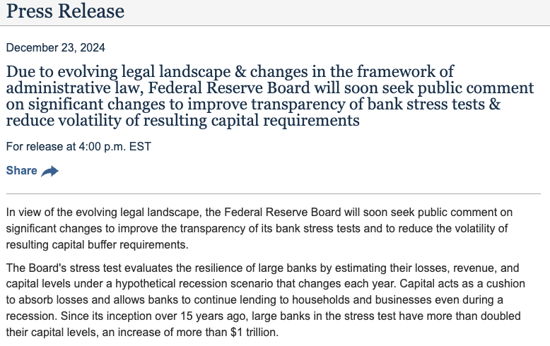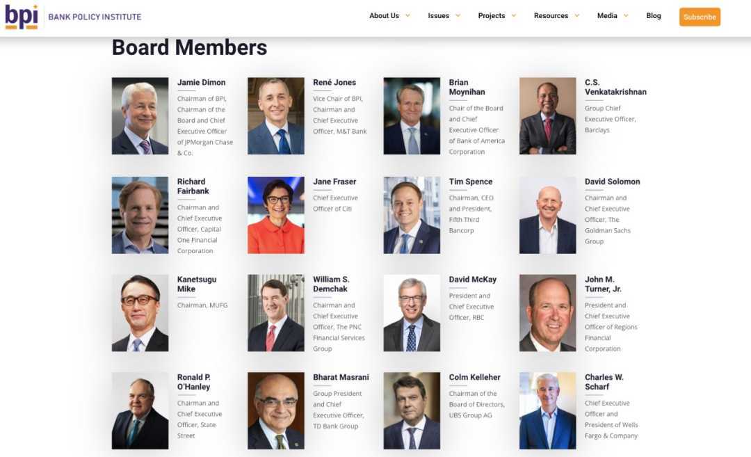 值得注意的是,12月24日,美国银行政策所(BPI)正式将美联储告上法庭,指控其在年度压力测试中使用不透明的流程评估银行韧性。BPI成员包括摩根大通、美国银行、高盛等大型银行,以及美国银行家协会和美国商会等组织,其理事会主席更是摩根大通CEO杰米·戴蒙。