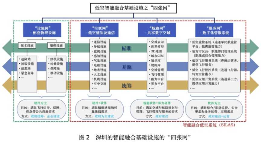 《指南(V1.0)》通过引入“四张网”——设施网、空联网、航路网、服务网,为低空经济打造了一个开放统一的基础设施支撑框架。该指南以应用场景为导向,融合了航空、地面交通、信息技术及人工智能等多领域标准,既满足了当前行业需求,也为未来新场景、新技术的接入预留了足够的扩展空间。