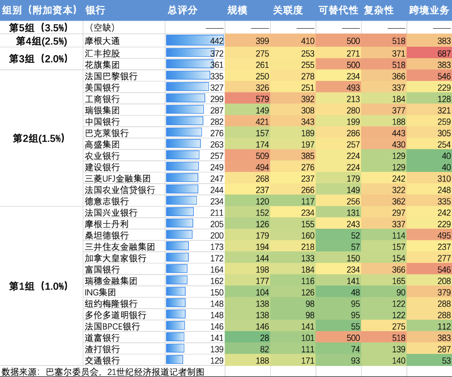 (图片说明:图1为2024年G-SIBs名单分组情况;图2为G-SIBs评估标准五个维度及其权重)