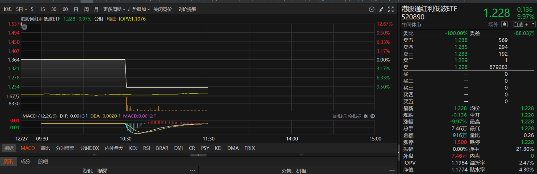 12月26日,港股红利主题ETF呈现强势上涨,吸引了众多投资者的追捧。然而,仅仅一天之后,12月27日,红利港股ETF、港股央企红利ETF以及港股通红利低波ETF均遭遇跌停,让投资者措手不及。