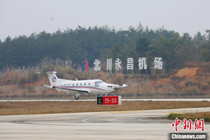 中新网绵阳12月27日电 (张延) 12月27日14时,一架搭载7名乘客的皮拉图斯PC-12飞机自四川省绵阳市北川永昌机场腾空而起,经过1小时20分钟的飞行,平稳降落于重庆梁平机场,标志着川渝地区首条低空短途运输航线正式开通并顺利完成首航。