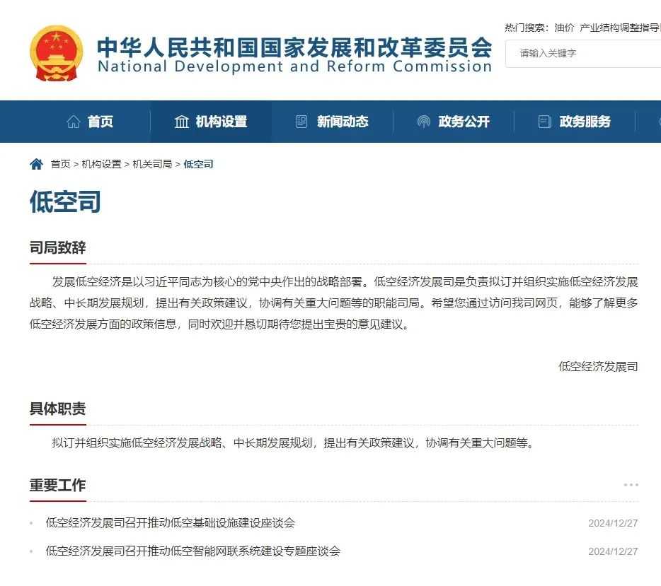 国家发展改革委网站“机关司局”栏目近期进行了更新,正式宣布新成立了低空经济发展司(简称低空司),这一举措标志着我国在推动低空经济领域迈出了重要一步。