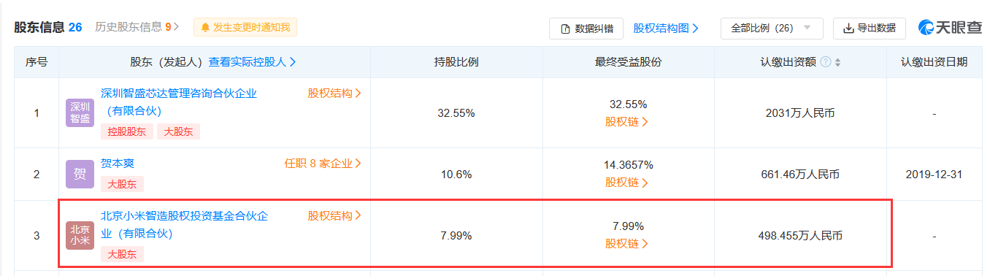 小米的投资版图正在加速拓展至半导体行业。6月26日,天眼查数据显示,深圳智微电子科技有限公司(简称智微电子)发生工商变更,新增股东包括北京小米智造股权投资基金合伙企业(有限合伙)(简称小米智造)等。变更后,小米智造将持有智微电子7.99%的股份。
