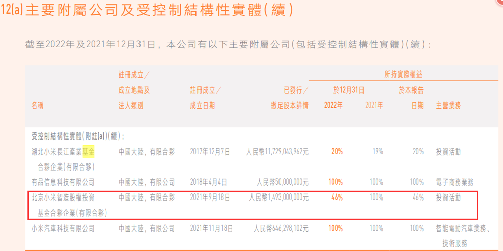 除了小米智造,小米还拥有另一大投资平台——湖北小米长江产业基金合伙企业(有限合伙)(简称小米产投),该平台成立于2017年,投资标的超过100家,涵盖光电芯片、汽车芯片、半导体制造设备等领域。
