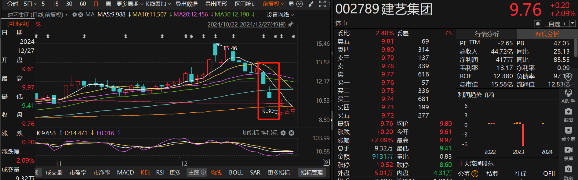 建艺集团作为珠海香洲区国资办旗下的装饰综合服务商,12月23日公告称因涉嫌信息披露违法违规被立案调查。此前,公司已因多项违规问题收到深圳证监局的行政监管措施决定书。二级市场方面,立案公告披露的当日建艺集团已连吃两个跌停板,次日再次一字跌停。