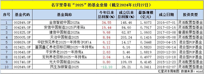 红星资本局12月31日综合报道,随着2025年日益临近,市场焦点转向了一批名字中带有“2025”的公募基金产品。这些基金的表现如何,成为了投资者密切关注的焦点。