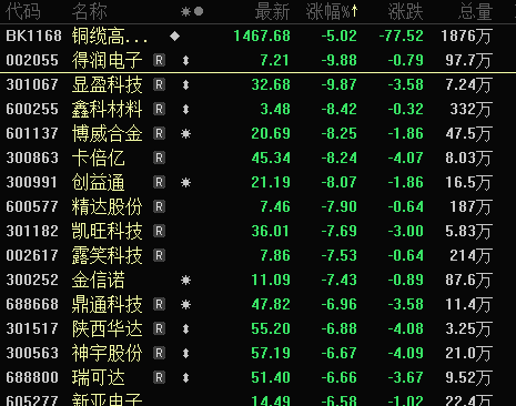 其中,铜缆高速连接作为近期AI领域的热门细分题材,其概念股得润电子接近跌停,显盈科技、卡倍亿、博威合金、金信诺、鑫科材料等个股盘中跌幅均超过7%。尽管该板块在12月30日创下了历史新高,且年内有多只概念股涨幅翻倍,甚至神宇股份、沃尔核材、兆龙互连等个股的最大涨幅超过3倍,但短期内市场回调压力显现。