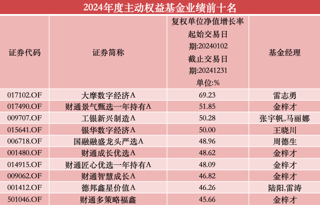 2024年基金业绩排名揭晓,主动权益基金大放异彩