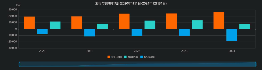 在净发行方面,银行二级资本债和永续债的净发行量均有所减少,但整体规模仍保持在较高水平。此外,银行金融债近五年的年度发行与到期量也呈现出稳定增长的趋势。