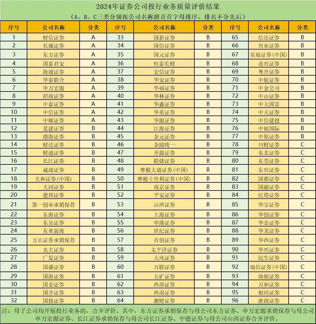 2024年证券公司投行业务质量评价结果揭晓,11家券商获评A类,名单出现大换血。评价结果对督促券商归位尽责、推动投行业务质量提升具有积极作用。