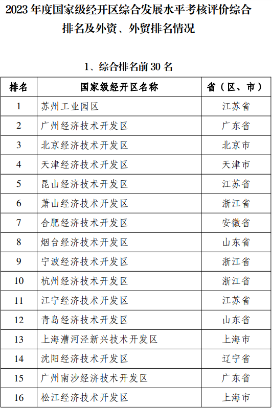 商务部网站1月3日公布最新消息,商务部已于近期圆满完成了2024年国家级经济技术开发区(国家级经开区)的综合发展水平考核评价工作,针对全国229家国家级经开区在2023年度的综合发展水平进行了全面且细致的考核评价。此次考核评价结果揭示了国家级经开区作为高水平对外开放平台的强劲实力,呈现出总量持续扩大、质量稳步提升的积极态势。