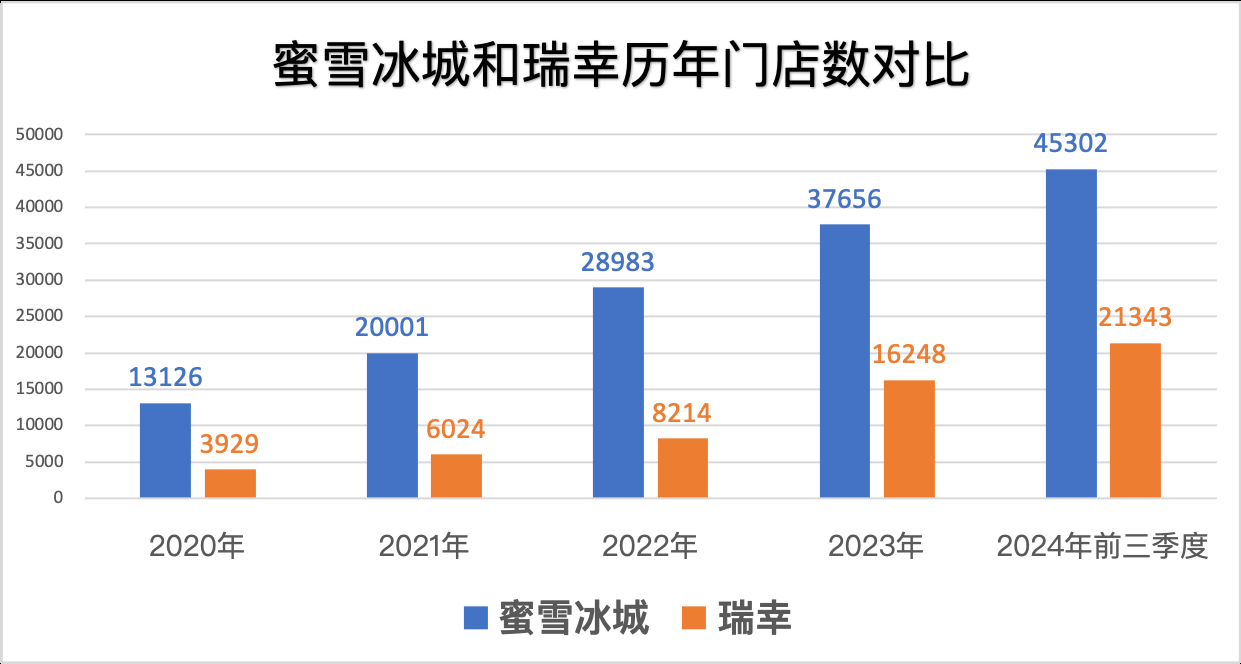 2023年,瑞幸加速开店,收入全面反超蜜雪冰城。不过,在净利润层面,瑞幸仍落后于蜜雪冰城。此外,瑞幸的开店速度在2023年已逼近蜜雪冰城,尽管其门店总数不到蜜雪冰城的一半。在2024年前三季度,瑞幸开店速度有所放缓,但仍保持增长态势,而蜜雪冰城则维持了与过往相似的开店速度。