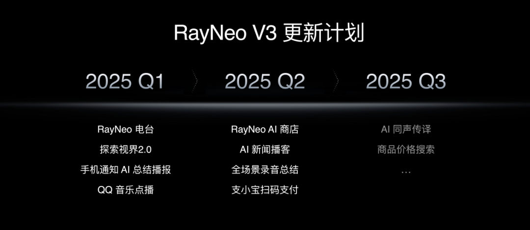 此次发布的雷鸟V3与阿里通义共同打造了业内首个专门面向智能眼镜的AI大模型,旨在更好地理解眼镜场景下的用户需求,为Agent提供更精准的知识支持和决策依据。在此基础上,雷鸟V3计划在2025年上半年上线多项功能,包括RayNeo 电台、“探索视界2.0连续视觉大模型”、手机通知AI总结播报等。同时,《科创板日报》还注意到,雷鸟V3由科创板上市公司虹软科技提供画质算法支持。
