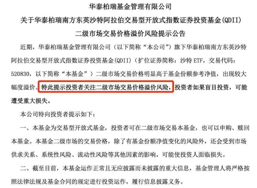 【导读】新年伊始,跨境ETF市场再现炒作狂潮,两只沙特ETF换手率惊人,基金公司紧急发布风险警示。