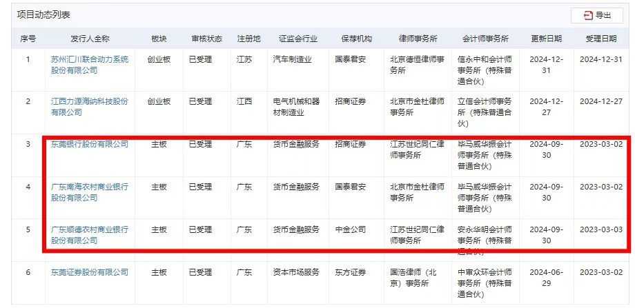 据悉,广东地区此次IPO审核状态变更的3家银行,此前因“IPO申请文件中记录的财务资料已过有效期,需补充提交”等原因被深交所中止上市。经过更新提交相关财务资料后,目前审核状态已恢复为“已受理”。此外,多家银行也在积极筹备上市工作,如广东南海农商银行和广东顺德农商行分别召开了临时股东大会,通过了相关议案。