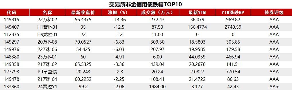 银行间市场及银银间市场回购定盘利率亦多数上行,显示出市场资金成本的上升。同时,交易所市场非金信用债涨跌互现,部分债券价格波动较大。