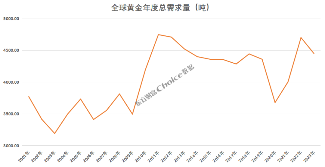 影响金价的主要因素包括基于商品属性的供求关系、储量和可开采年限,以及金融属性受美元影响等。从供需关系来看,黄金供给量基本保持稳定,而需求端的变化成为影响价格波动的更重要因素。近年来,全球黄金需求量的增加推动了黄金价格的逐步走强。同时,作为不可再生稀有资源,黄金储量和可开采年限的下降也在一定程度上影响了黄金价格走势。此外,黄金价格走势通常与美元指数有着明显的负相关性,但随着全球经济去美元化的深入,美元对黄金价格的影响也在逐渐减弱。