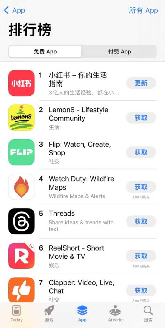 小红书成功登顶苹果美区应用商店免费榜。