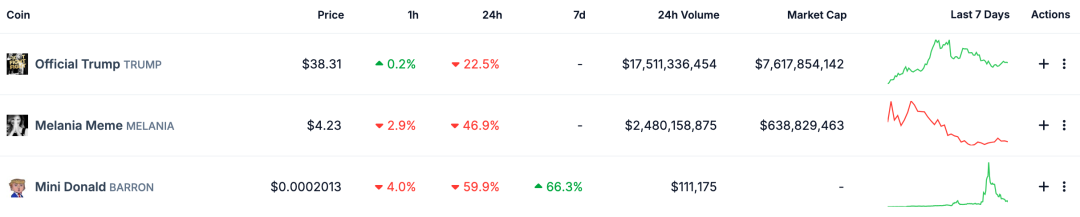 此外,值得注意的是,在特朗普夫妇分别发行了“TRUMP”和“MELANIA”币后,特朗普的小儿子巴伦也紧跟步伐,推出了同名Meme币“BARRON”。目前,这三款币种均已成功登陆主流交易所,成为了加密货币市场的热门话题。