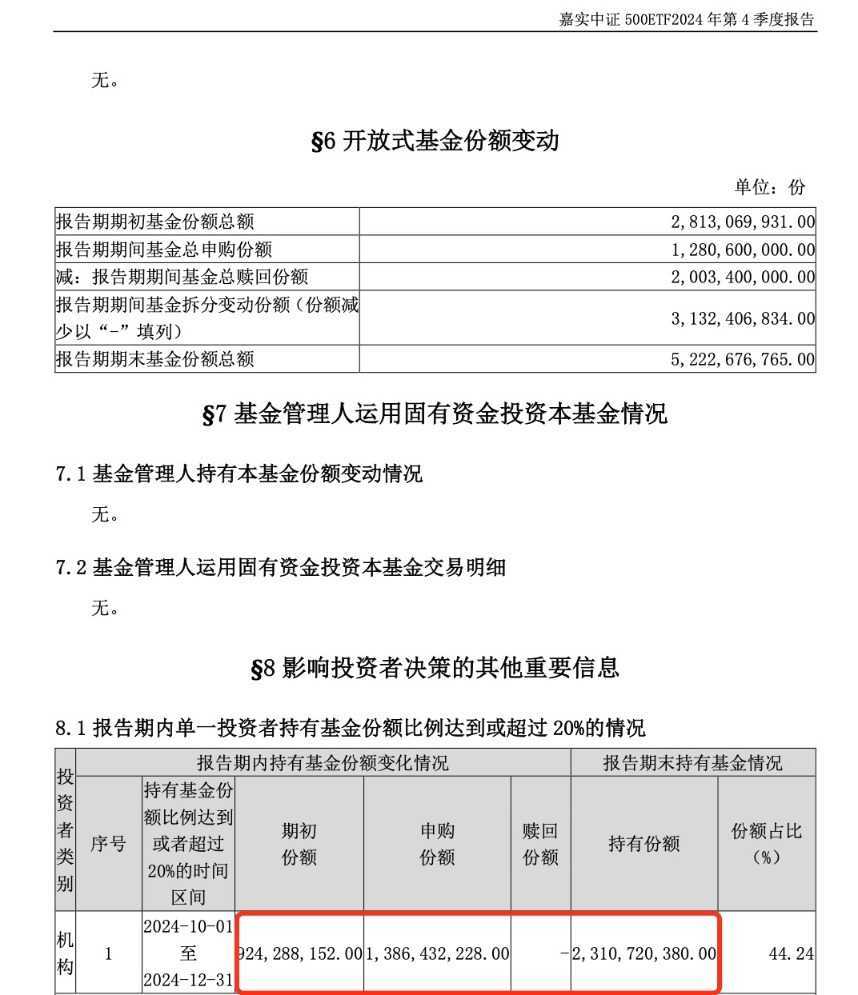同时,中央汇金投资有限责任公司在2024年四季度持有的华夏上证50ETF、南方中证500ETF、易方达创业板ETF等多只宽基产品的份额亦保持稳定。